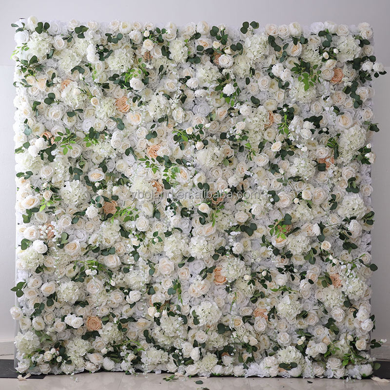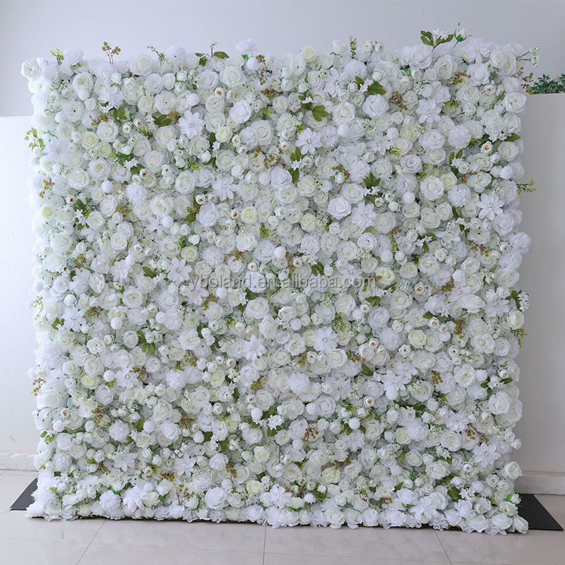E-43 rentable à bas prix Faux pur crème ivoire blanc fleurs pas cher rouleau 3D tissu mariage toile de fond décor fleur mur