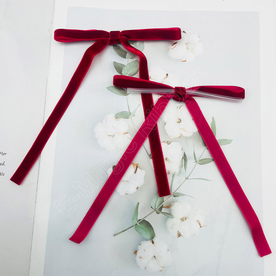 Noeuds en velours rouge E-Magic, décorations pour sapin de Noël, couronne, ruban en velours bordeaux, guirlande, noeuds en velours avec attaches transparentes