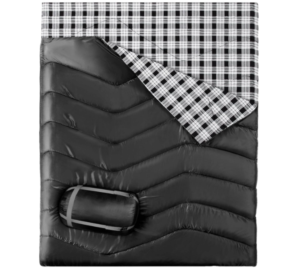 Sac de couchage double extra large en flanelle personnalisé E-RIKE pour couple, sac de couchage double à compression pour le camping avec 2 oreillers