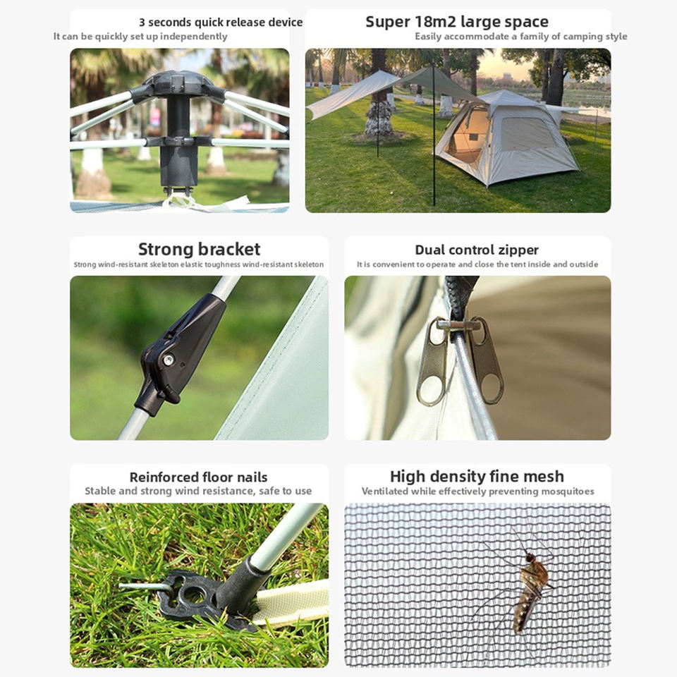Tente automatique E-RIKE 4 saisons, protection UV, imperméable, portable, pour 4 personnes, tente familiale avec auvent