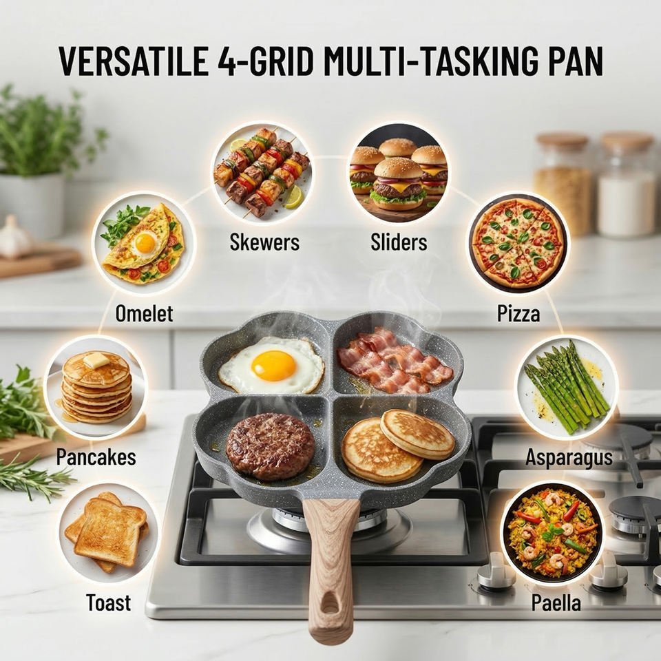 Padelle 4 en 1, poêles à frire 4 sections, plancha à griller 4 trous (Personnalisable)