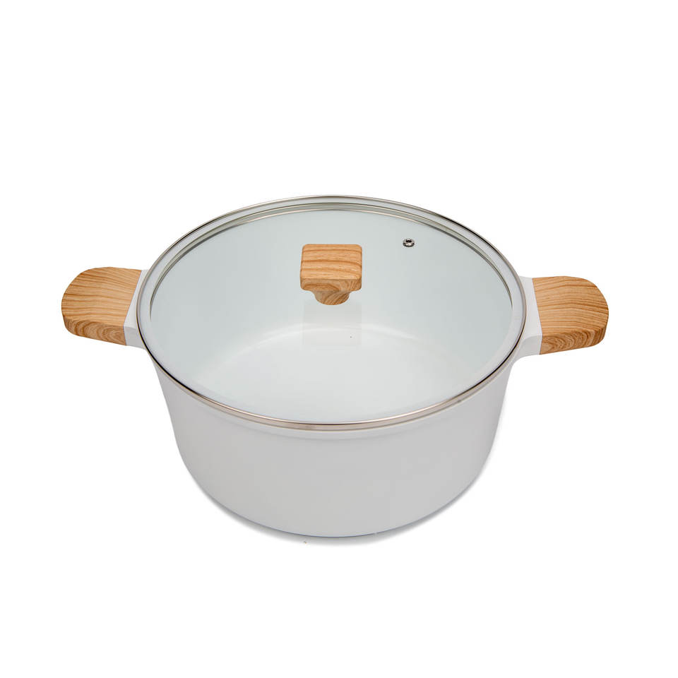 E-TOP Factory, marmite en céramique blanche de haute qualité, antiadhésive, avec couvercle, grande marmite de cuisine, pot à ragoût avec couvercle en verre