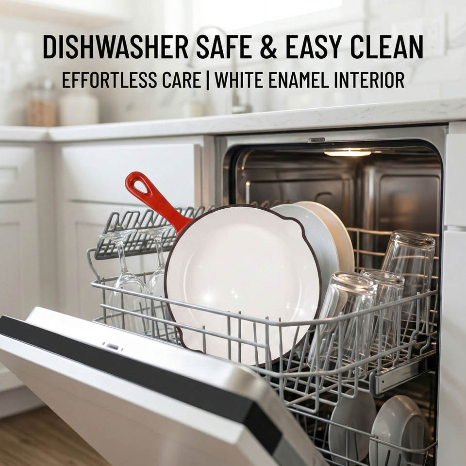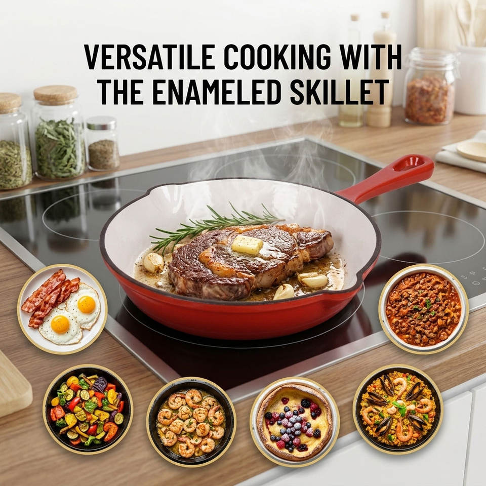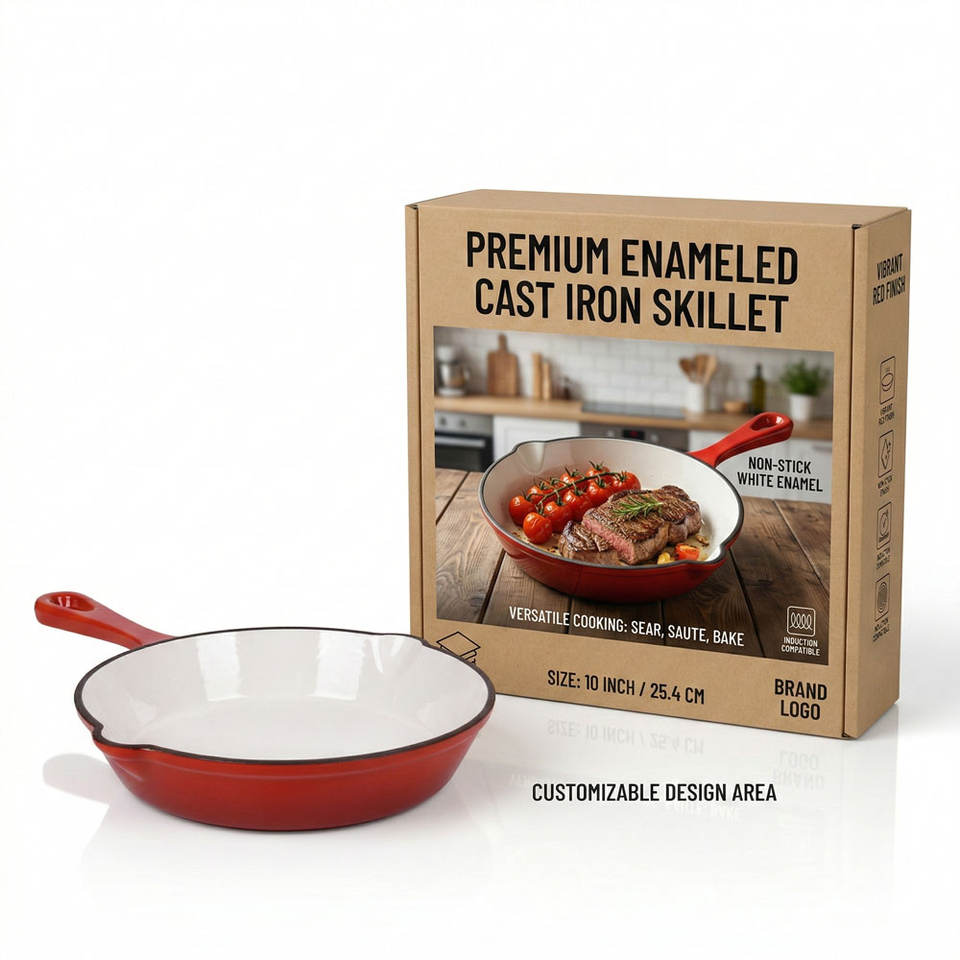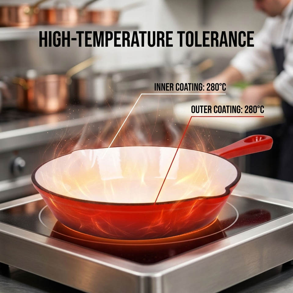 Poêle à frire en fonte rouge E-TOP avec double bec verseur, poêle à paella, cocotte antiadhésive émaillée, cocottes-minute en acier inoxydable