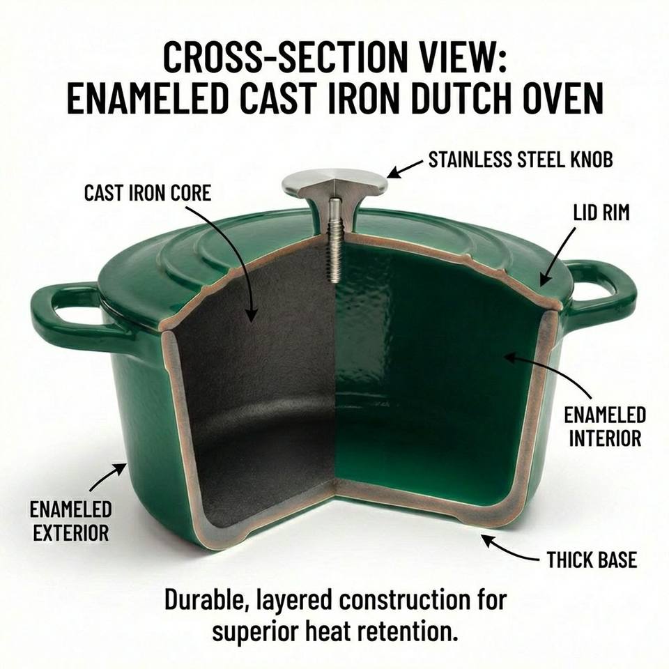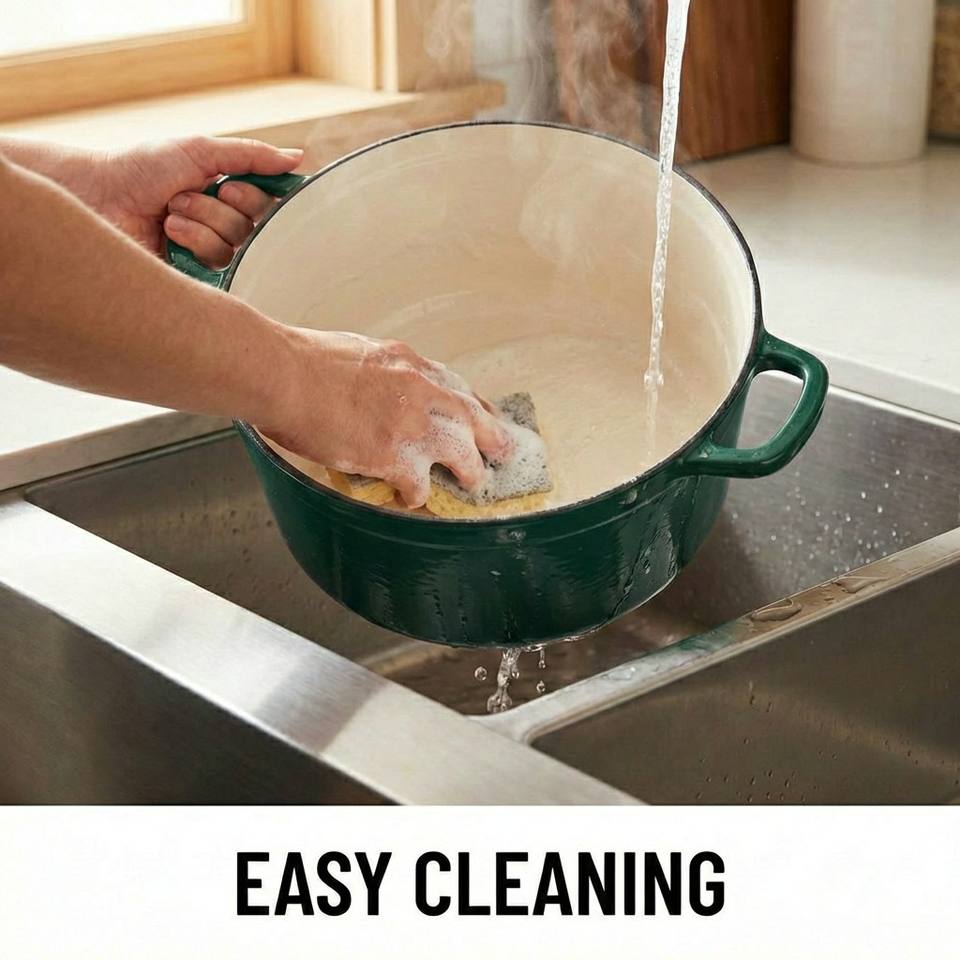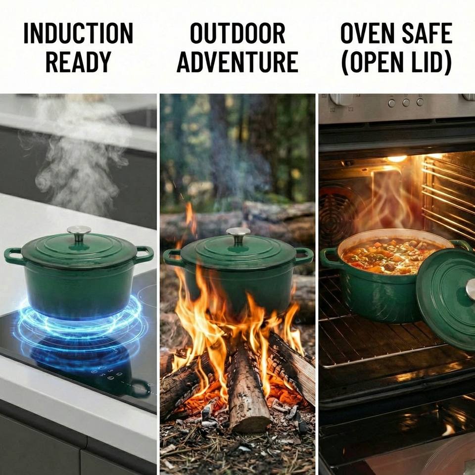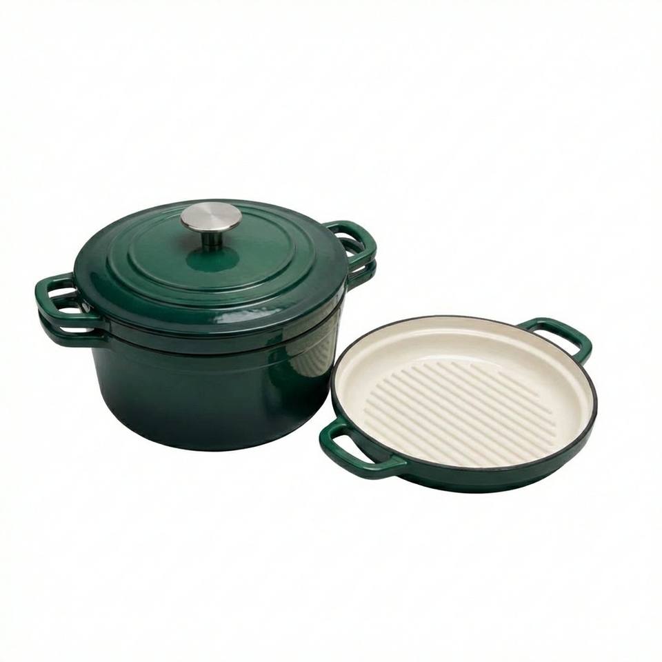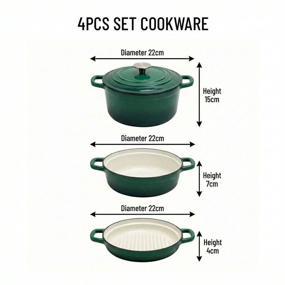 Ensemble de 4 casseroles en fonte émaillée verte E-Top, ustensiles de cuisine, cocottes en fonte
