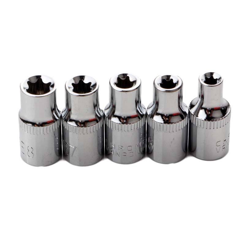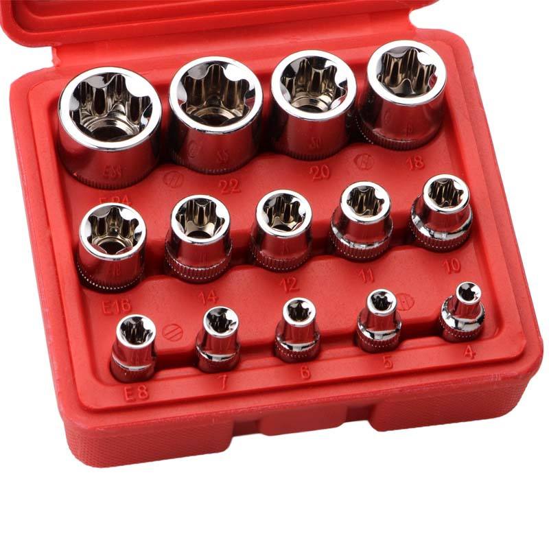E-Type Socket Set 14-Piece Metric 6-Point Torx Chrome Vanadium Steel 1/2 In Drive Automotive Repair Tool Kit