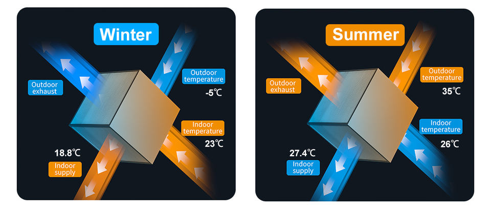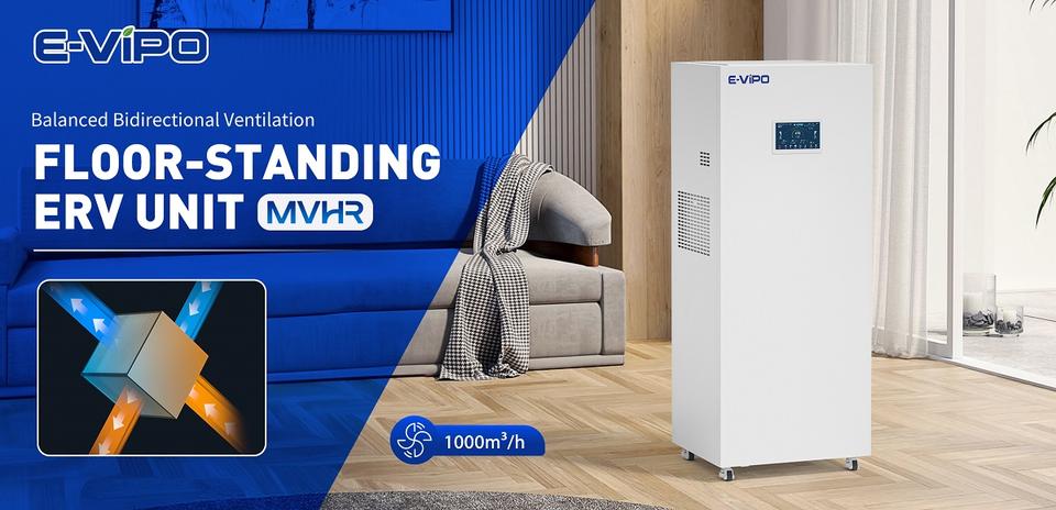 Système de ventilation ERV décentralisé sans conduit E-VIPO NEW, filtre HEPA, HRV MVHR 1000m³, unité de récupération de chaleur EC amovible