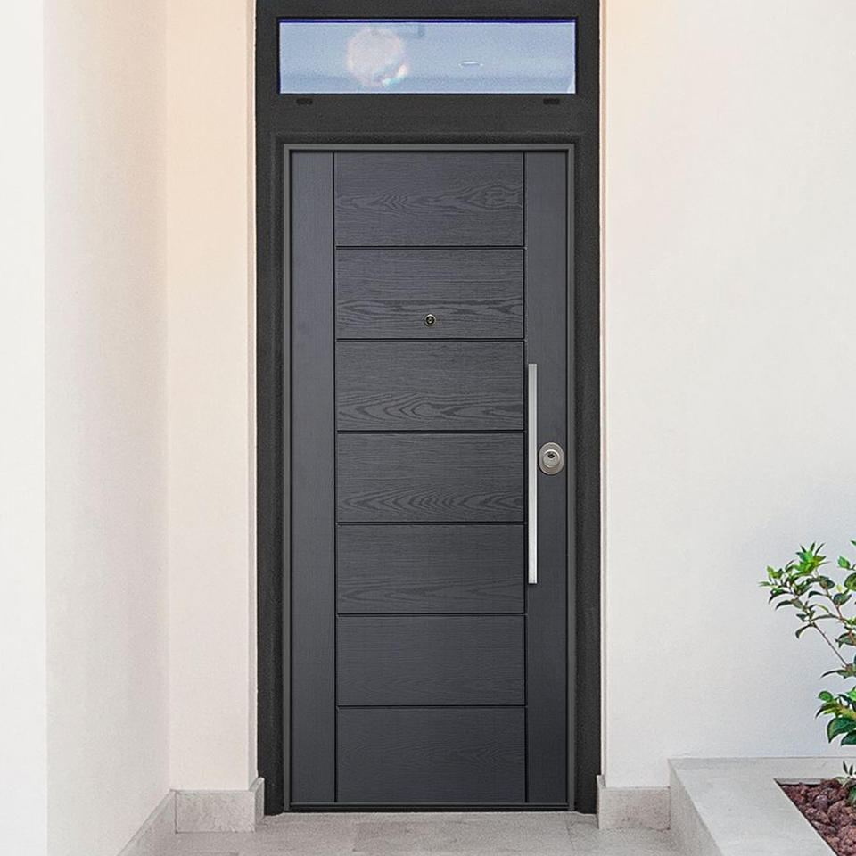 E-lite: porte de sécurité avec structure galvanisée, double joints et panneau extérieur en fibre de verre HELIOS, design moderne pour villa