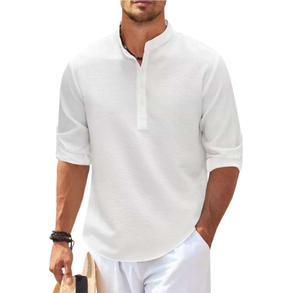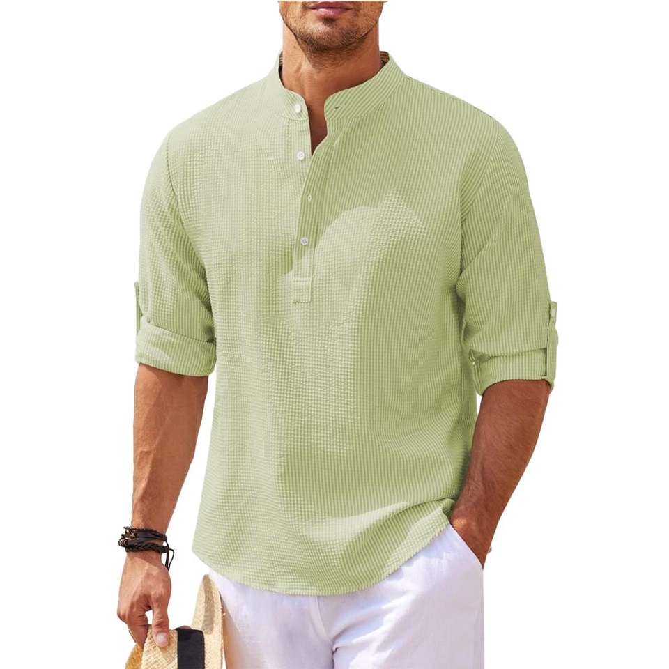 E0111ME41 Chemise à manches longues pour homme, col roulé, couleur unie, chemise à carreaux, ananas, hauts décontractés, mode Sehe