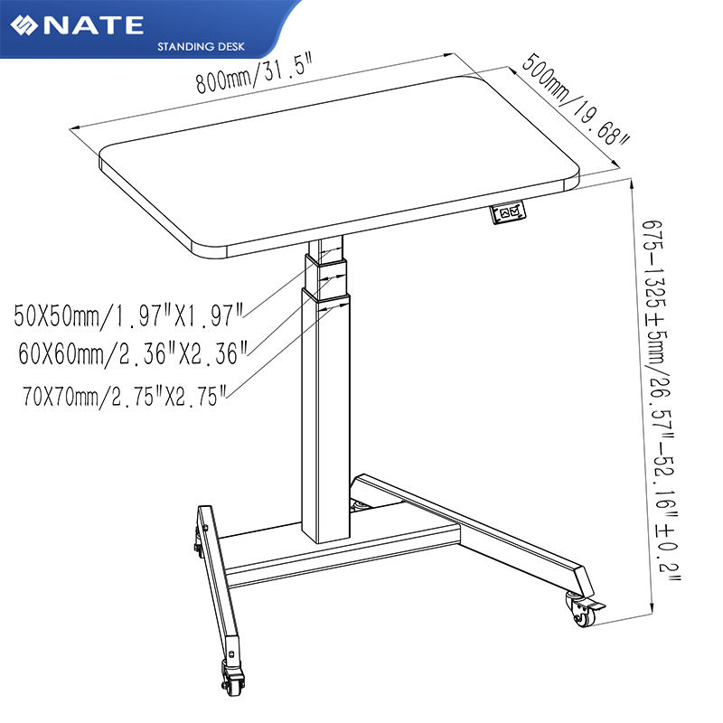 Plage de hauteur:675-1325 millimètres