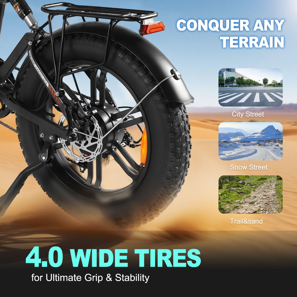 Foldable, Led Display, Usb Charging, Disc Brakes, Shock Absorption, pedal assist, Removable Battery, rear rack, front basket, Adjustable Seat, lightweight frameFeature