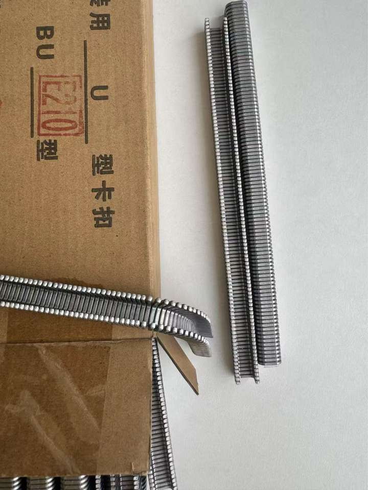 Clips en U E200 pour l'emballage sécurisé des aliments et des boissons, matériaux en bois et en papier, dimensions 29x26x24.5