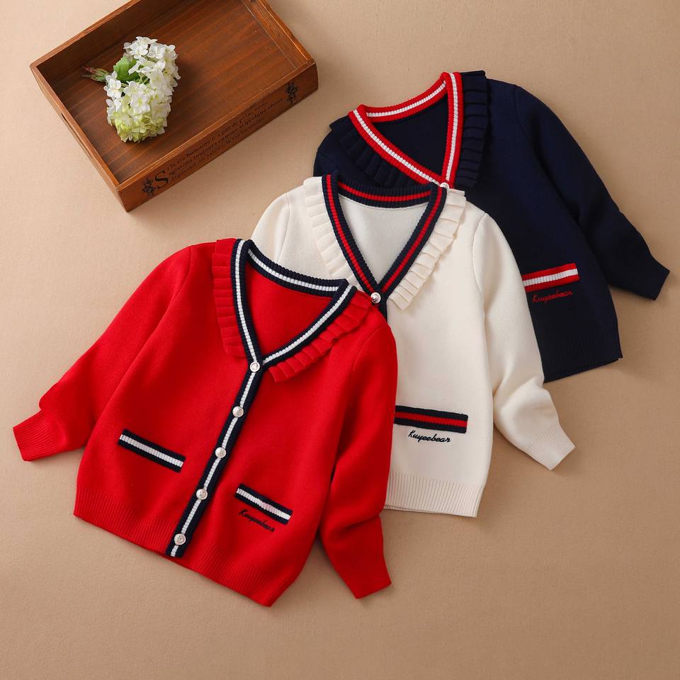 E2WOO Nouveauté Printemps Automne Pull pour Fille à Manches Longues, Cardigan à Boutons pour Filles de 3 à 12 Ans
