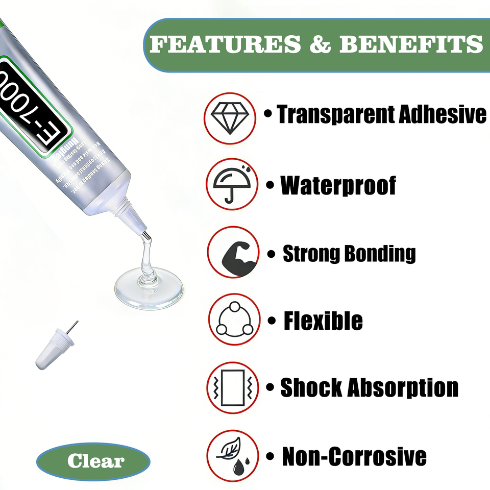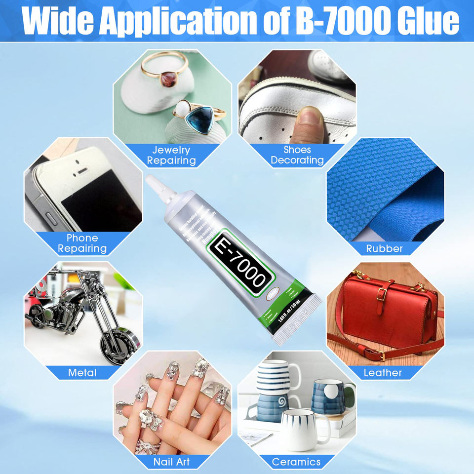 Colle de réparation E7000 transparente pour artisanat de strass, bijoux, perles, adhésif semi-fluide à haute viscosité pour vêtements, chaussures, tissus