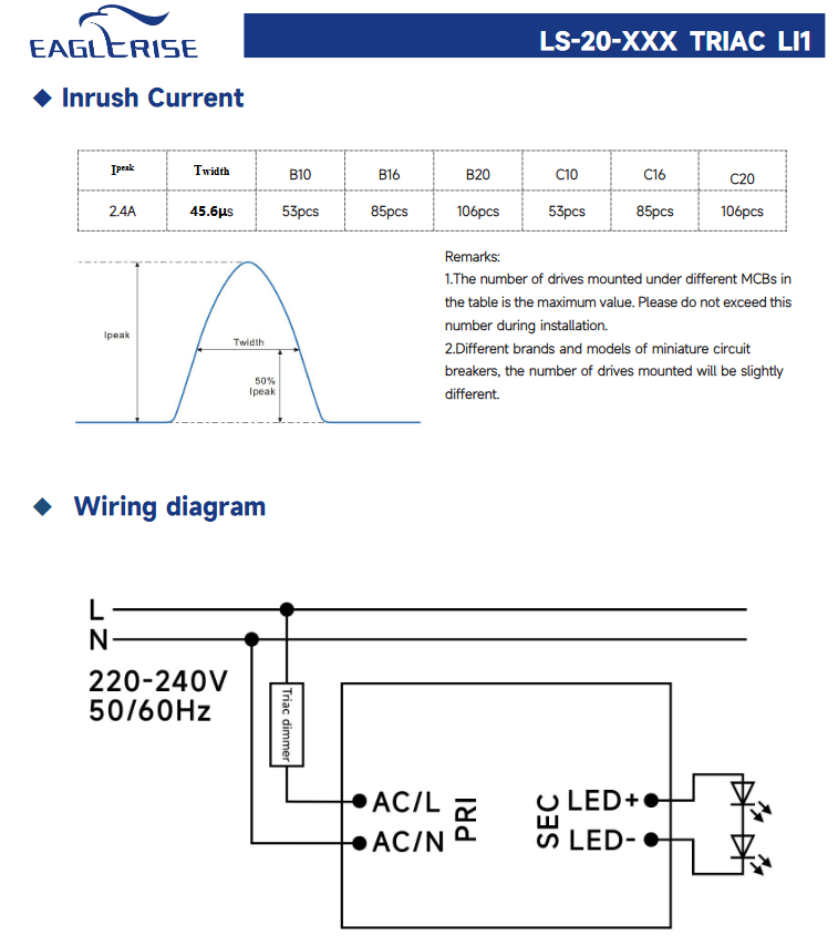 LS-20-XXX TRIAC LI1Numéro de Type