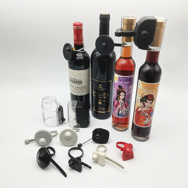 EAS B013 étiquette de bouteille de vin AM 58KHz pour magasin de détail avec lanière antivol haute sécurité RF 8.2MHz étiquette dure antivol pour bouteille de vin