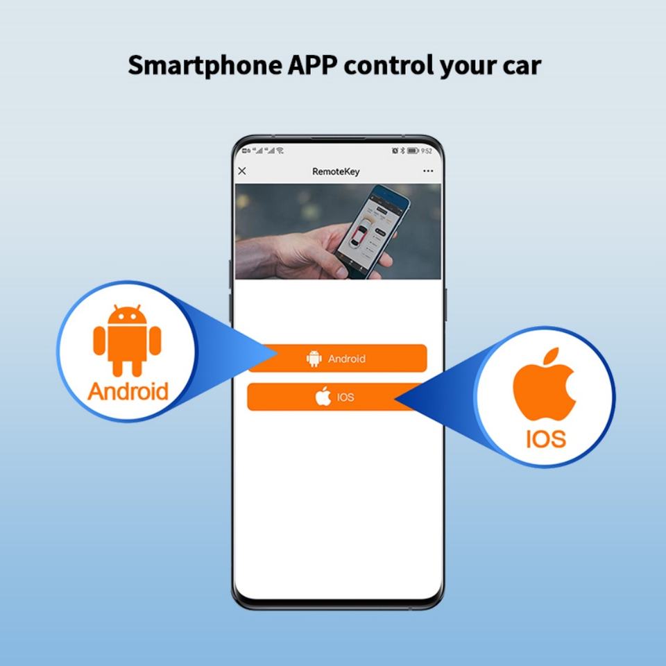 Localisation GPS via l'application, démarrage/arrêt du véhicule via l'application, verrouillage/déverrouillage via l'application