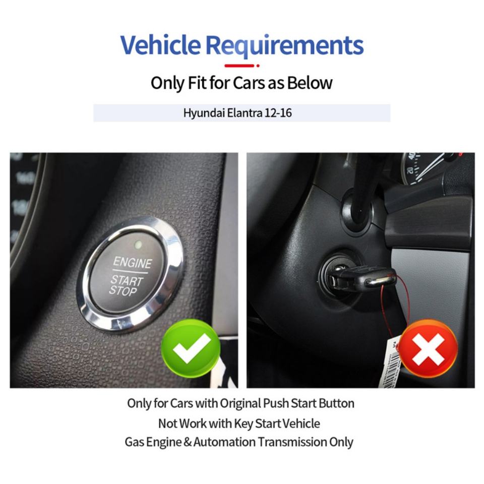 EASYGUARD Démarreur à distance Plug & Play compatible avec les véhicules Elantra 12-16 à démarrage par bouton-poussoir, transmission automatique, essence uniquement