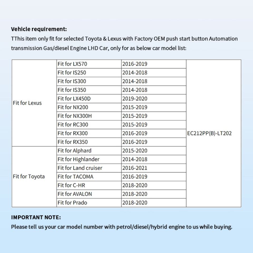 Démarreur à distance EASYGUARD compatible avec Lexus RX300 2016-2019, voitures à moteur essence, véhicules à transmission automatique uniquement, Plug and Play