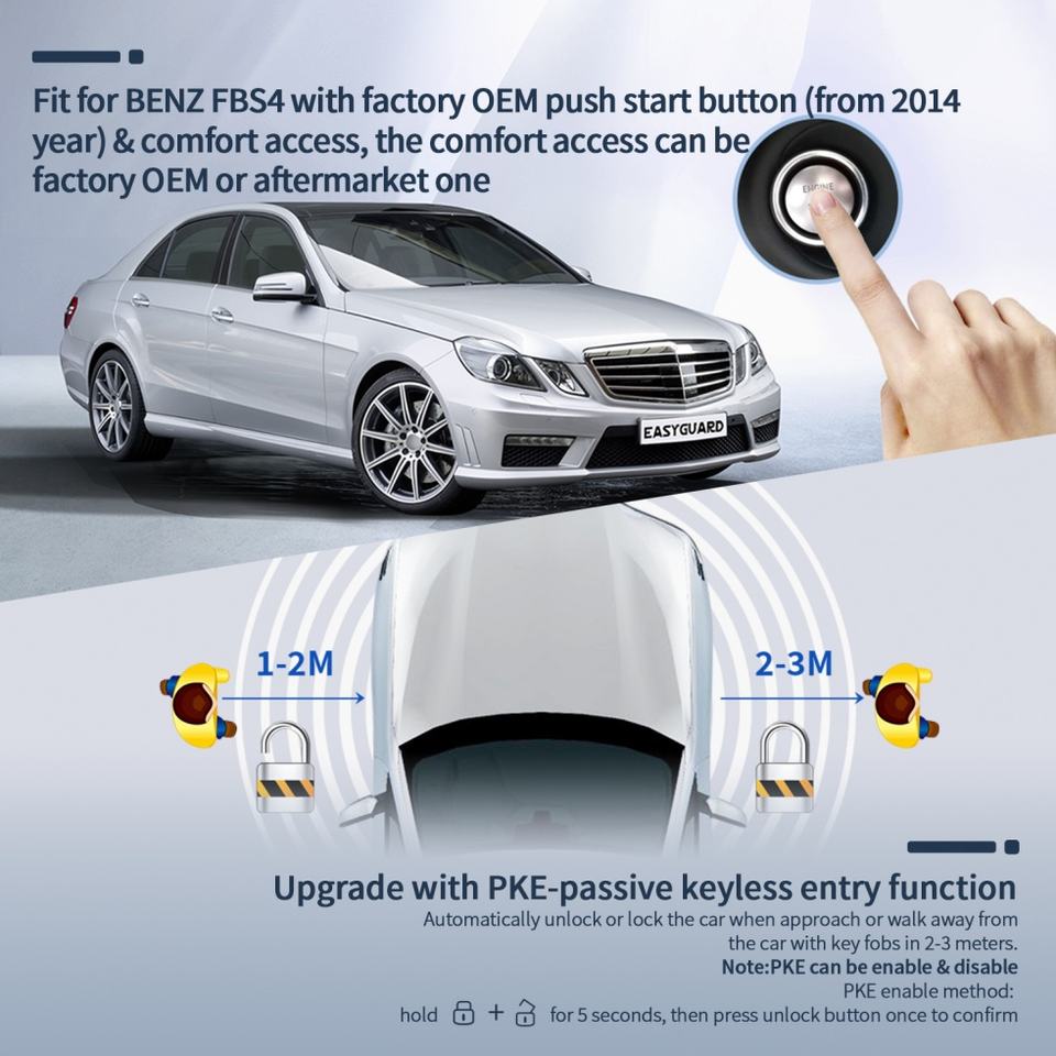 Système de clé intelligente EASYGUARD sans clé compatible avec BENZ FBS4 avec bouton de démarrage OEM (2014-) et accès confort (Comfort Access)