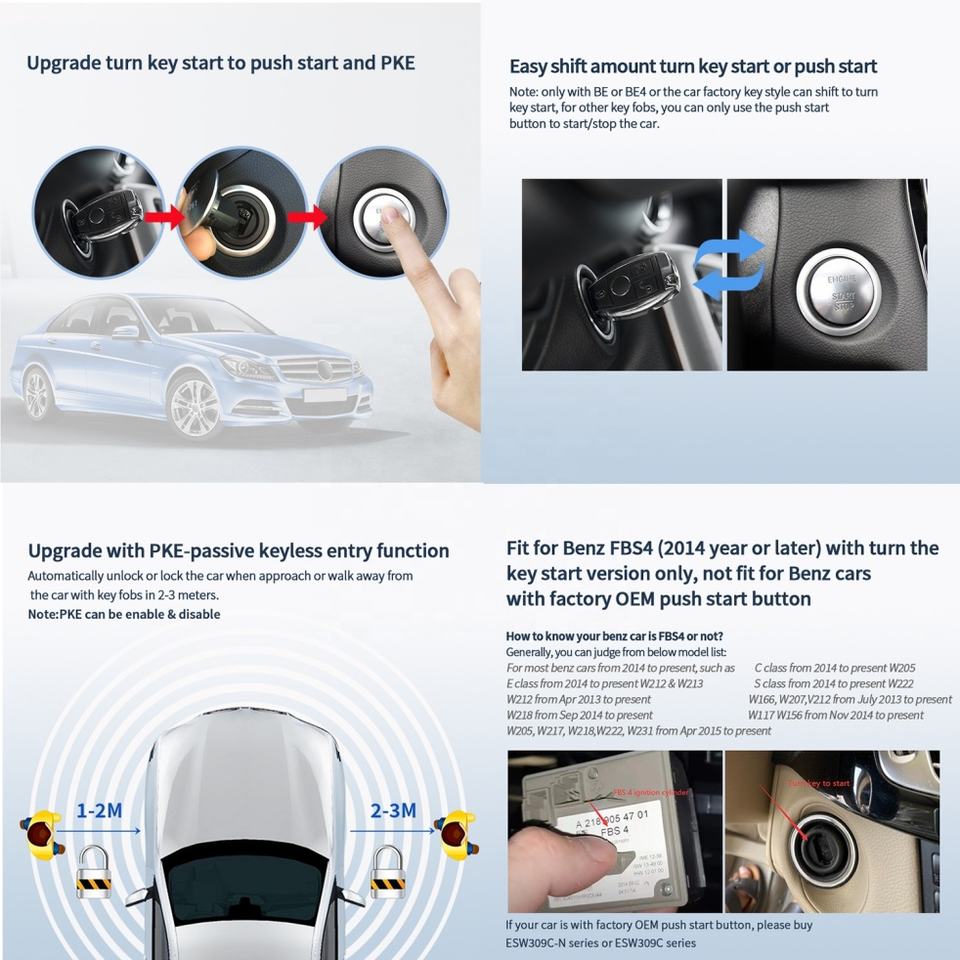 Système de clé intelligente EASYGUARD PKE compatible avec Benz ML/GL/GLS, Classe G, Classe A, Classe B 2014+ Démarrage par clé FBS4