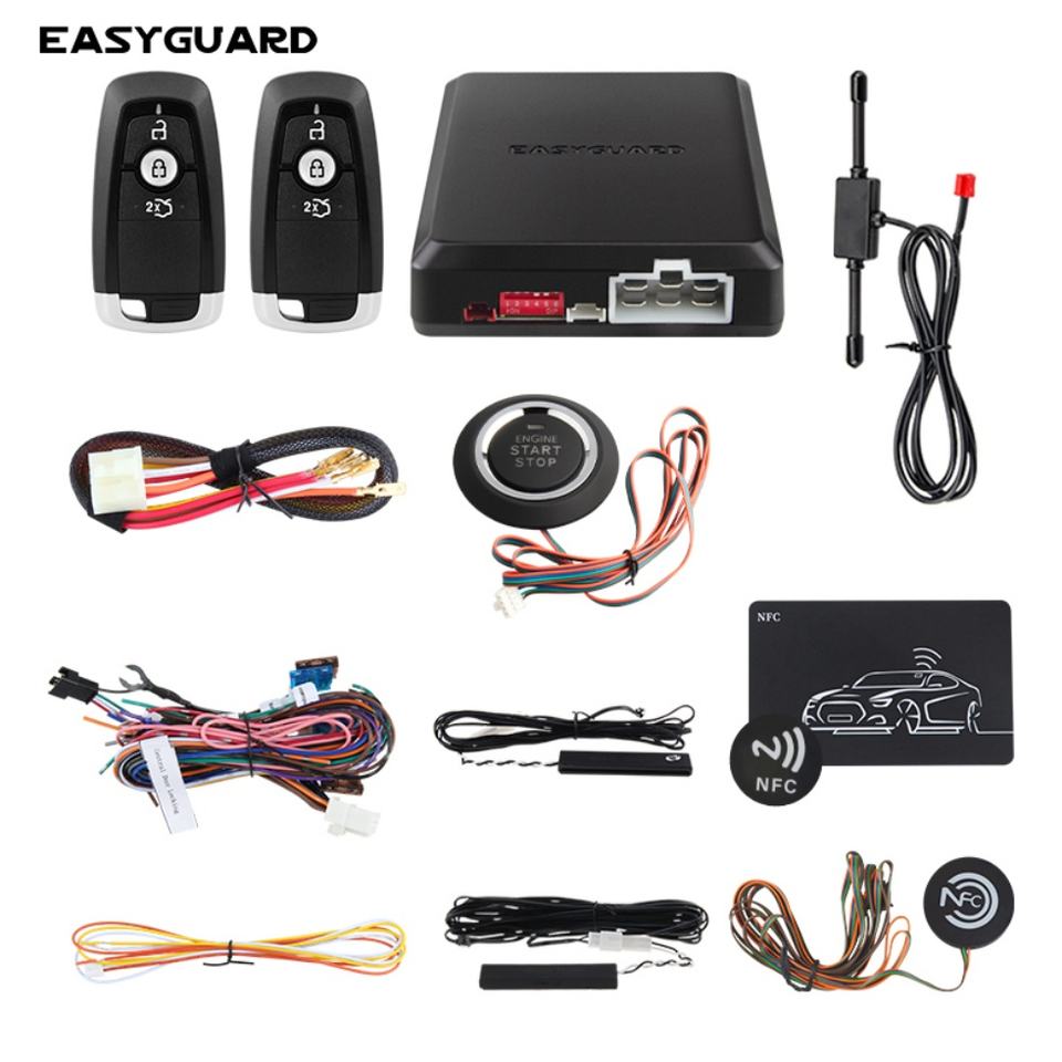 EASYGUARD Système d'alarme de voiture universel PKE sans clé, démarrage automatique, bouton de démarrage, application NFC pour smartphone, verrouillage/déverrouillage, clés de style Ford