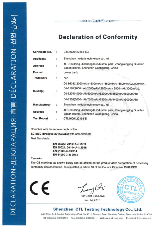CE, FCC, RoHS, PSE, KC, TIS, FDS, UN38.3, etc.