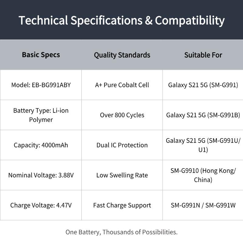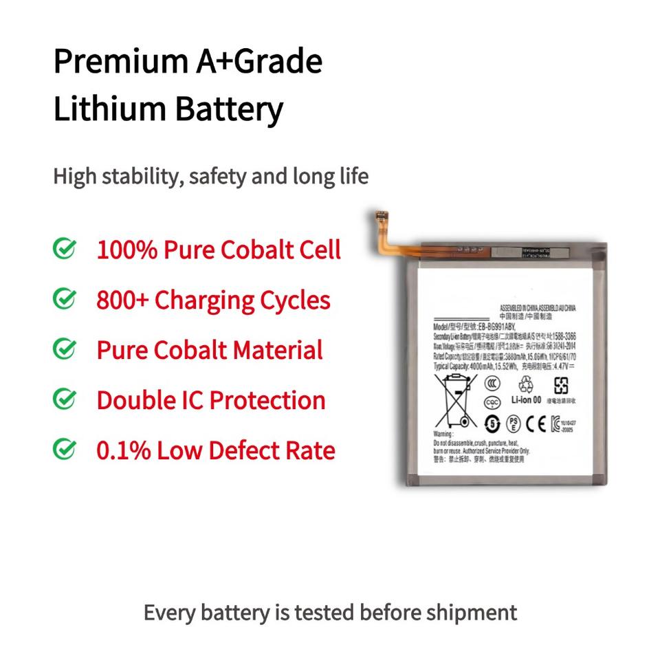 Batterie de remplacement EB-BG991ABY pour Samsung Galaxy S21 5G SM-G991 SM-G991B 4000mAh Qualité supérieure Capacité réelle à 100%