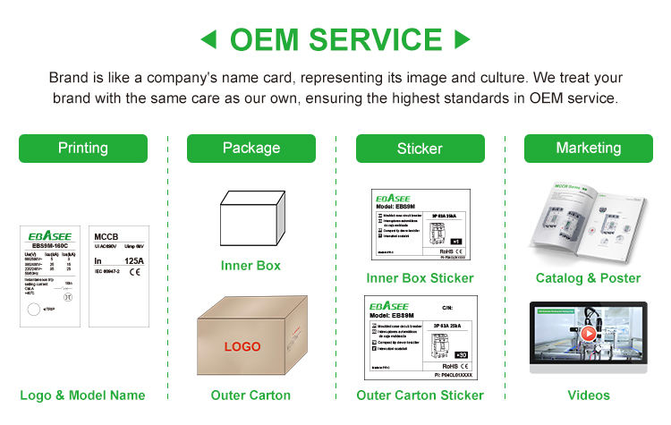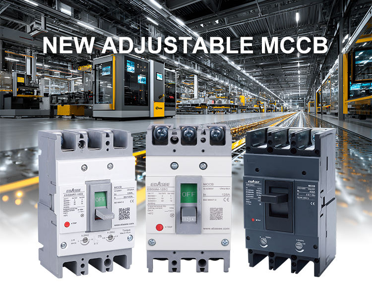 Disjoncteur à boîtier moulé réglable EBASEE ou OEM industriel 1P 2P 3P 4P 125A 160A 250A 400A 630A 800A 1250A 1600A