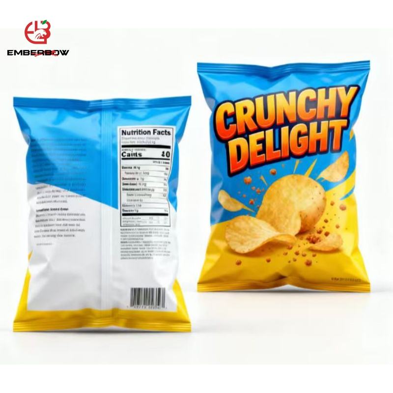 Sachets en plastique écologiques EBB avec fermeture arrière, étanches à l'humidité, avec fermeture éclair, logo personnalisé, emballage pour collations, biscuits, chips de pommes de terre