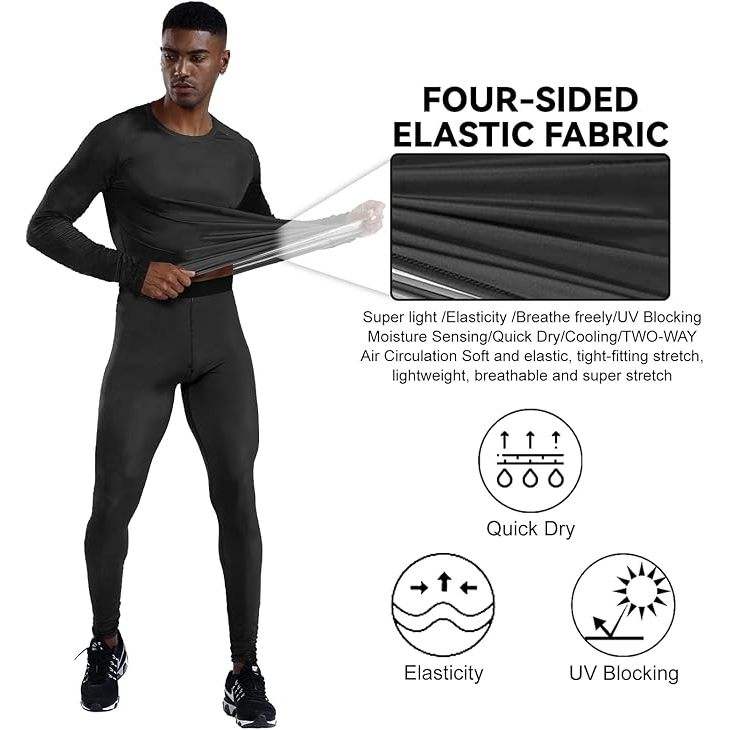 EBI Ensemble de vêtements d'extérieur d'entraînement de compression noirs pour hommes Vêtements d'extérieur pour hommes de qualité supérieure