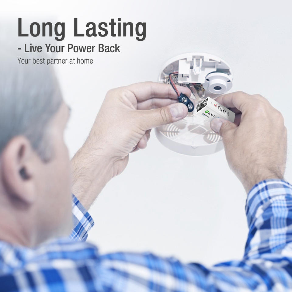 Piles EBL 9 volts, lot de 2, emballage blister, piles alcalines, ultra longue durée de vie, avec une durée de conservation de 7 ans