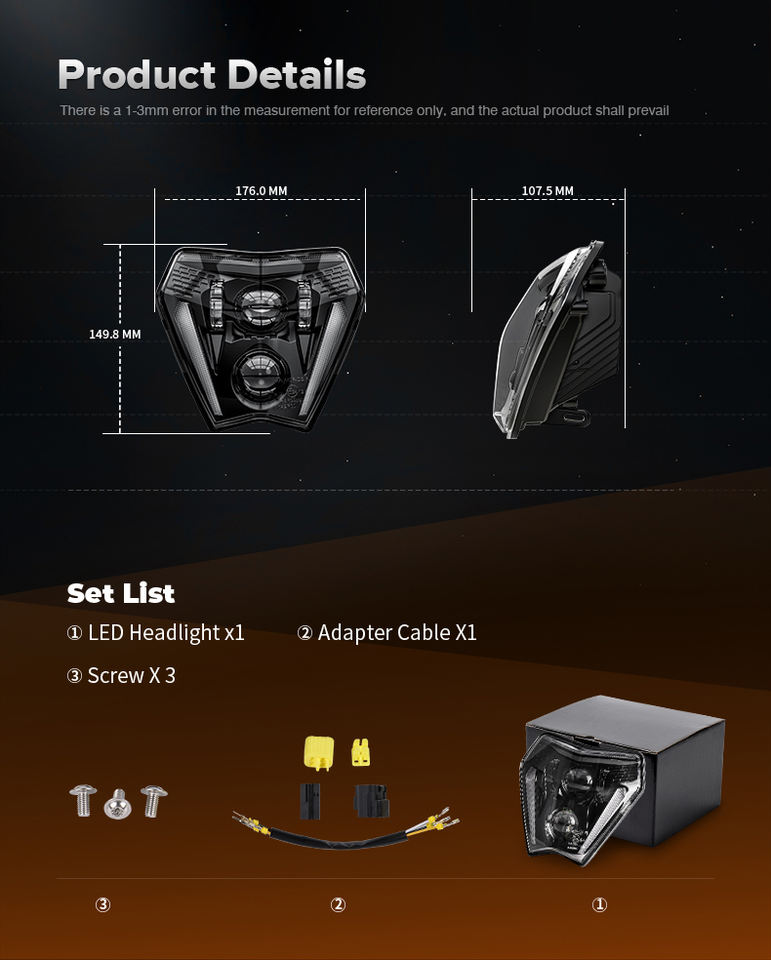 Phare LED ECE pour Pit Bike KTM 150 250 300 EXC 250 350 450 500 EXC-F SIX JOURS 2024 2025