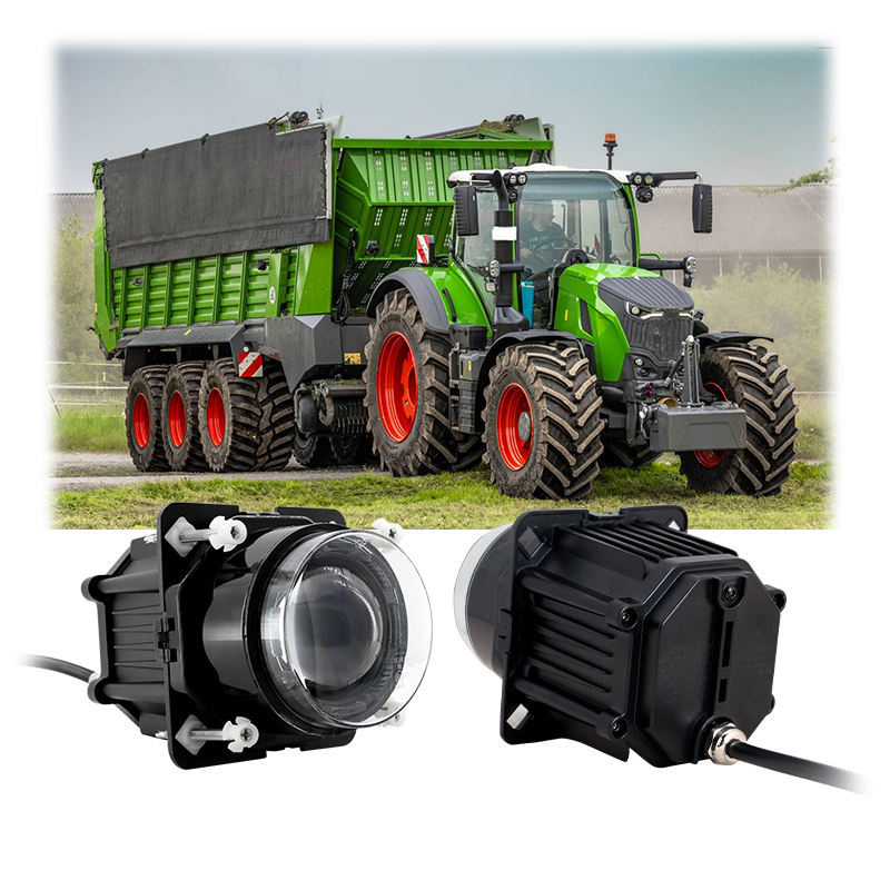 Phare LED rond ECE R10 R112 R7 de 90 mm pour Fendt G334900160021, faisceau haut et bas