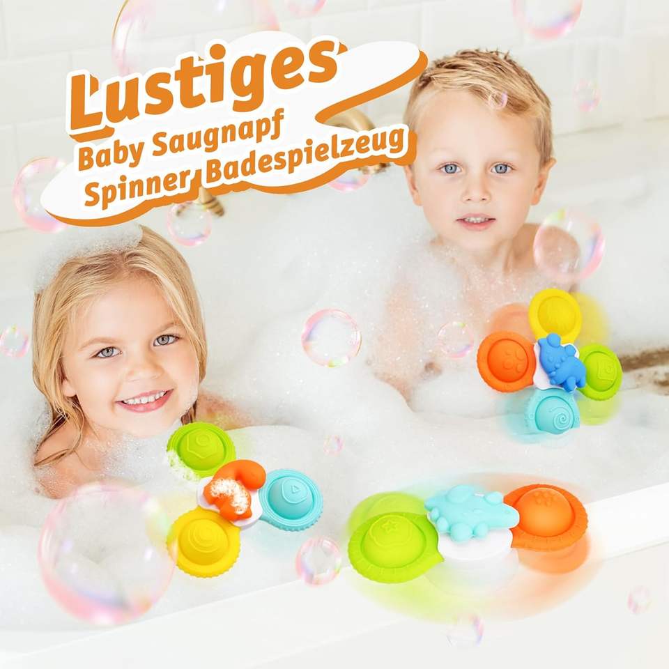 Jouets sensoriels de bain ECHOCUBE à ventouse pivotante, 3 pièces, design de dessin animé, jouets de voyage en silicone pivotants pour tout-petits de 2 à 4 ans