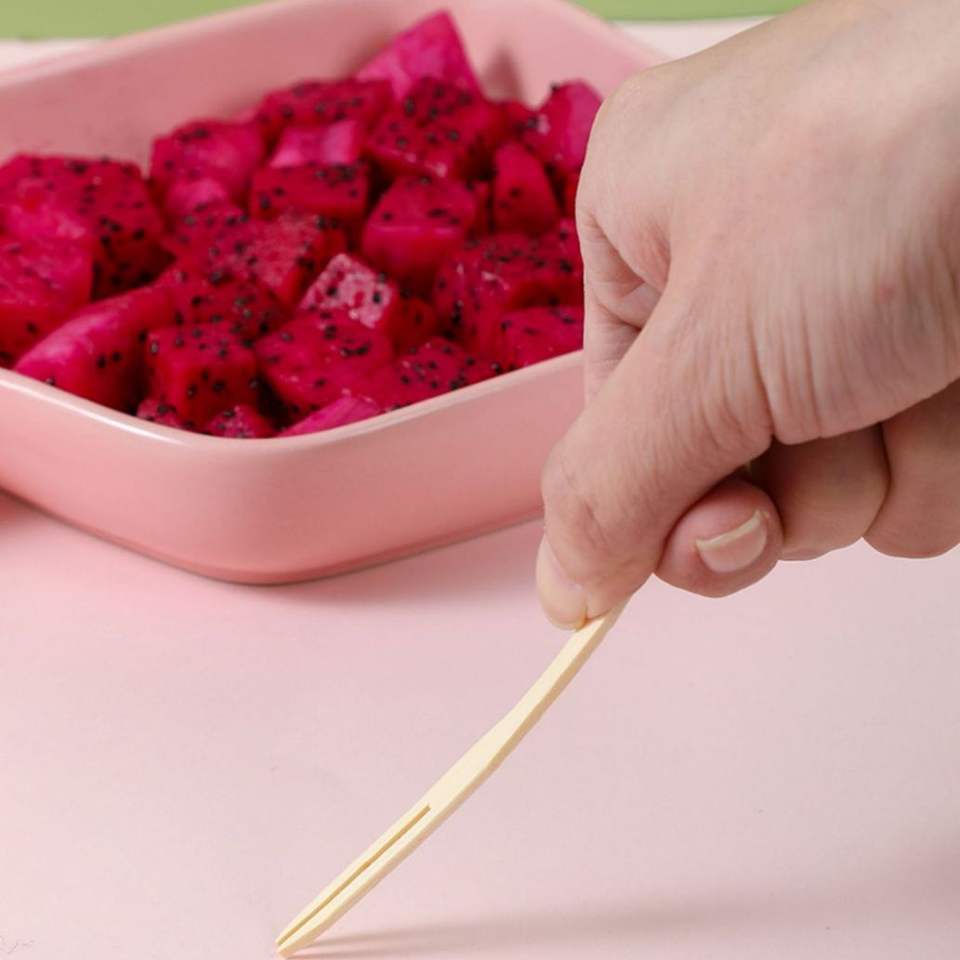 Type:Mini fourchette à fruits en bambou à 2 broches