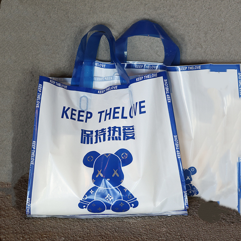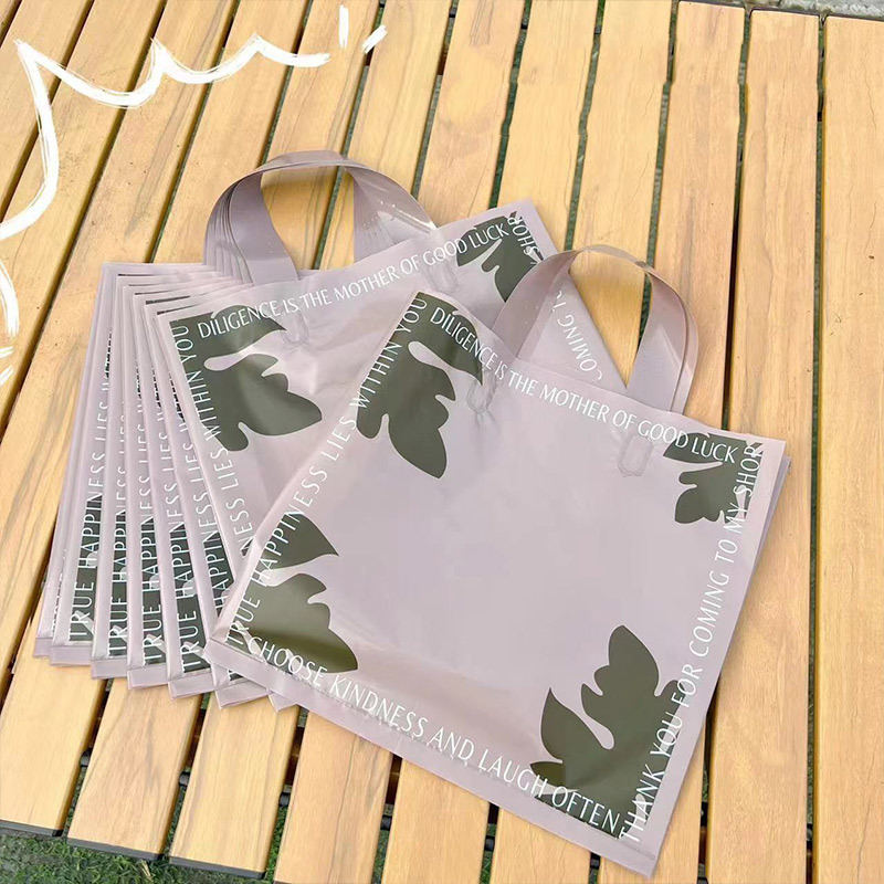 Sac en plastique PE écologique personnalisable, paysage vert, réutilisable, imprimé en gravure, recyclable, avec poignée, taille personnalisée pour l'emballage de cadeaux