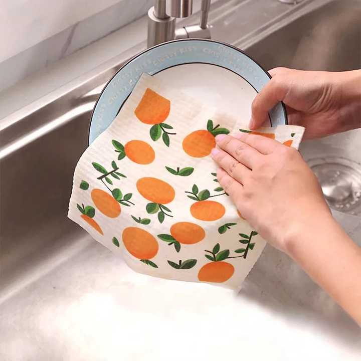 Torchon en Cellulose, serviette en suédois réutilisable à impression personnalisée écologique, chiffon de nettoyage
