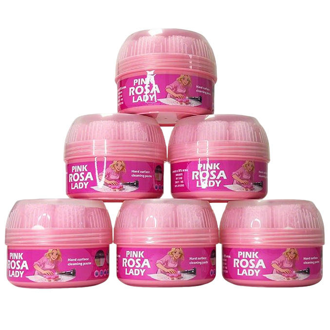 Pâte nettoyante rose multi-usages ECO Naturelle pour les taches ménagères avec éponge dure, visage souriant et parfum de rose