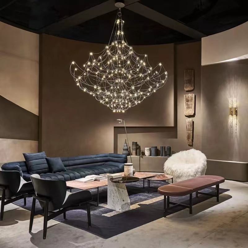 ECOJAS CL-003 Moderne lumière lustre de luxe plein d'étoiles art personnalité duplex longue lustre étoile tomber pendentif lampe