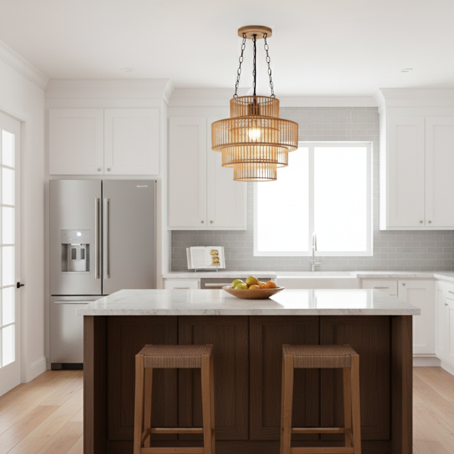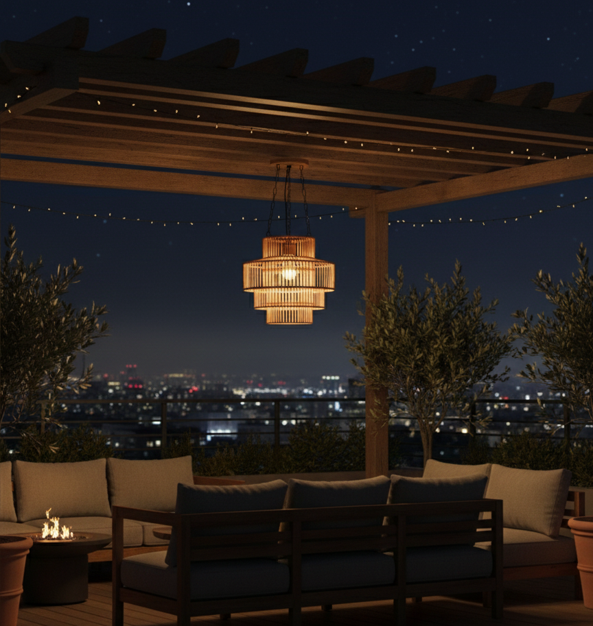 Lampe suspendue en bambou artisanale moderne ECONA - Légère et durable, éclairage intérieur pour salon