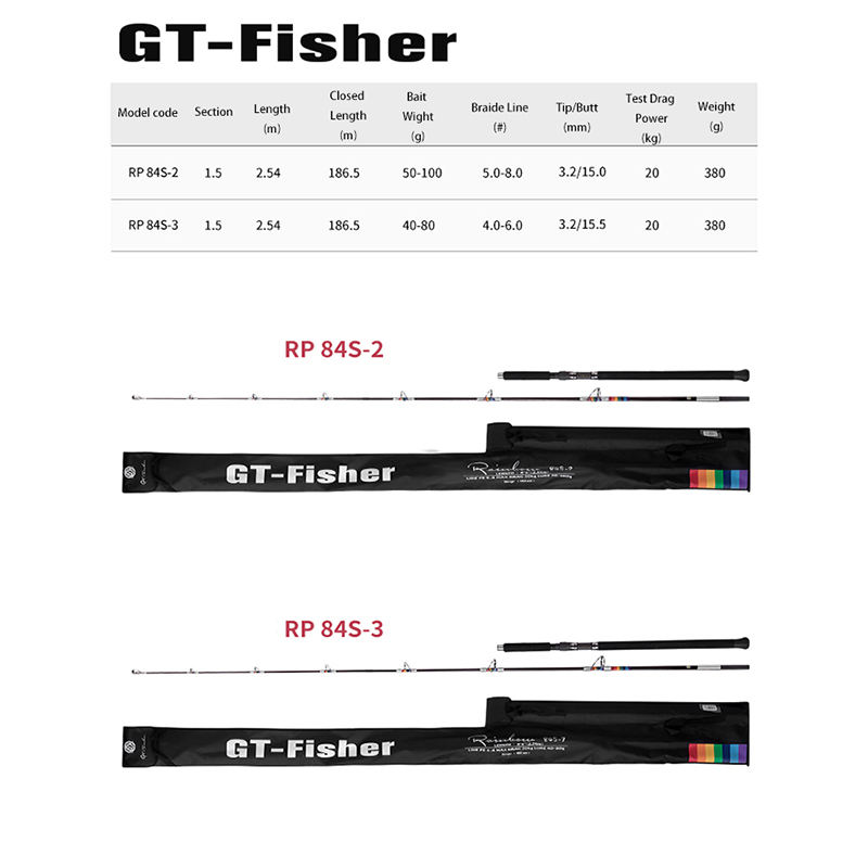 Canne à pêche ECOODA GT-FISHER Series Rainbow RP 8'4\" pour la pêche au thon, poids de l'appât 40-100g, canne à pêche spinning, puissance de freinage 20KG, canne à pêche pour gros poissons