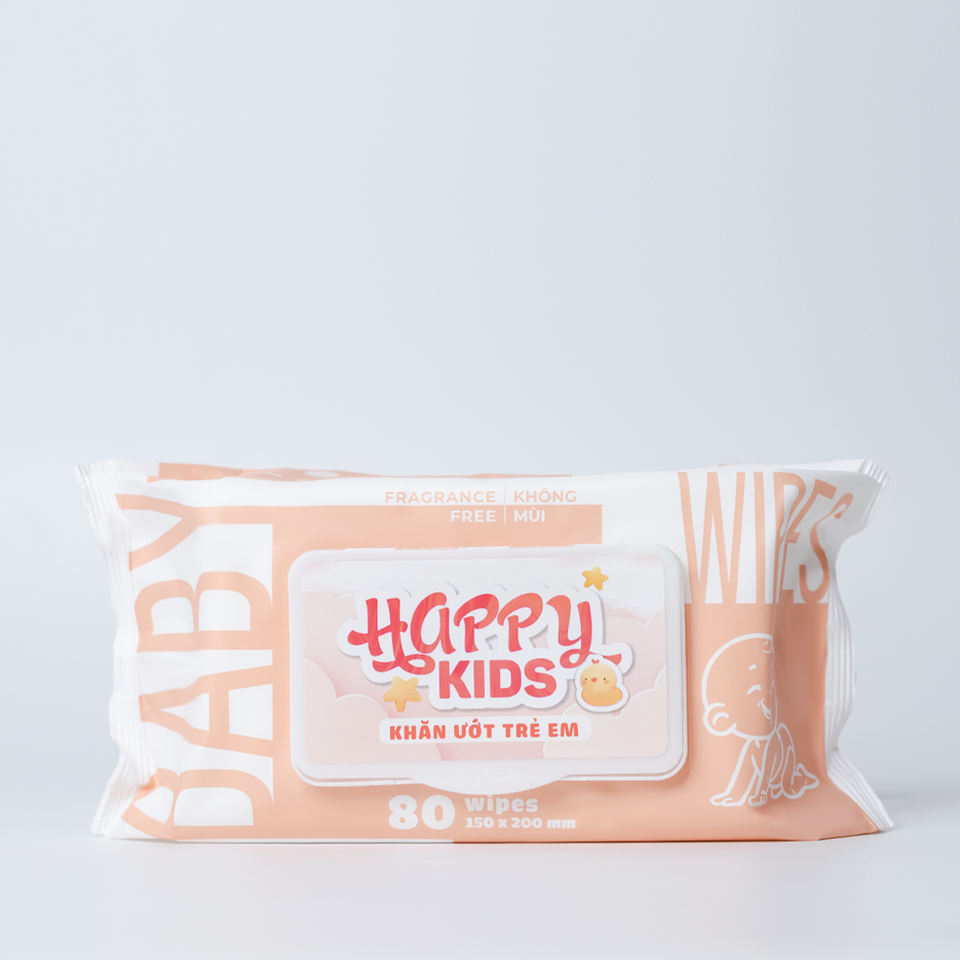 Lingettes pour bébé ECOWIPES Happy Kids, 80 lingettes douces sans parfum, lingettes humides pour le nettoyage doux du bébé
