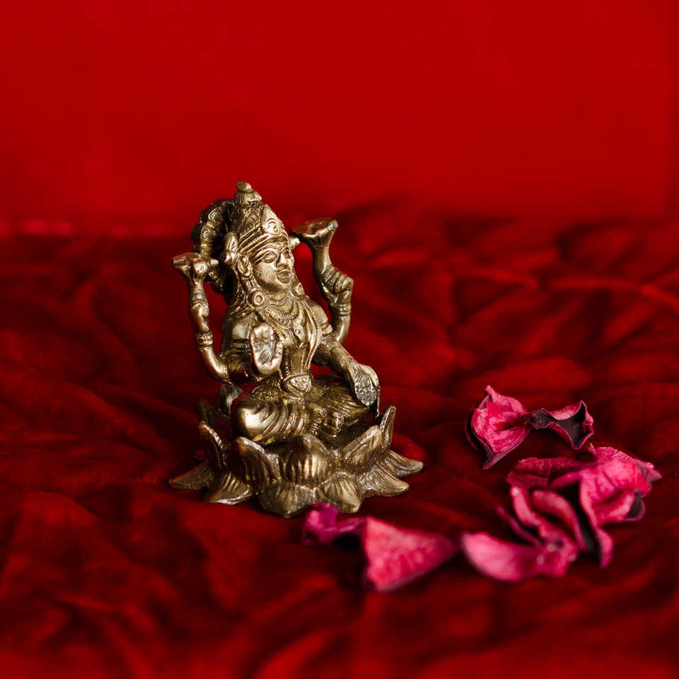 One Unit Brass Goddess Laxmi on LotusPackage Content