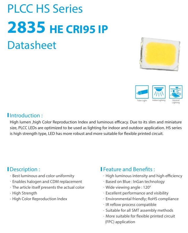 Product name:Low power PLCC <0.5W 2835 High intensity