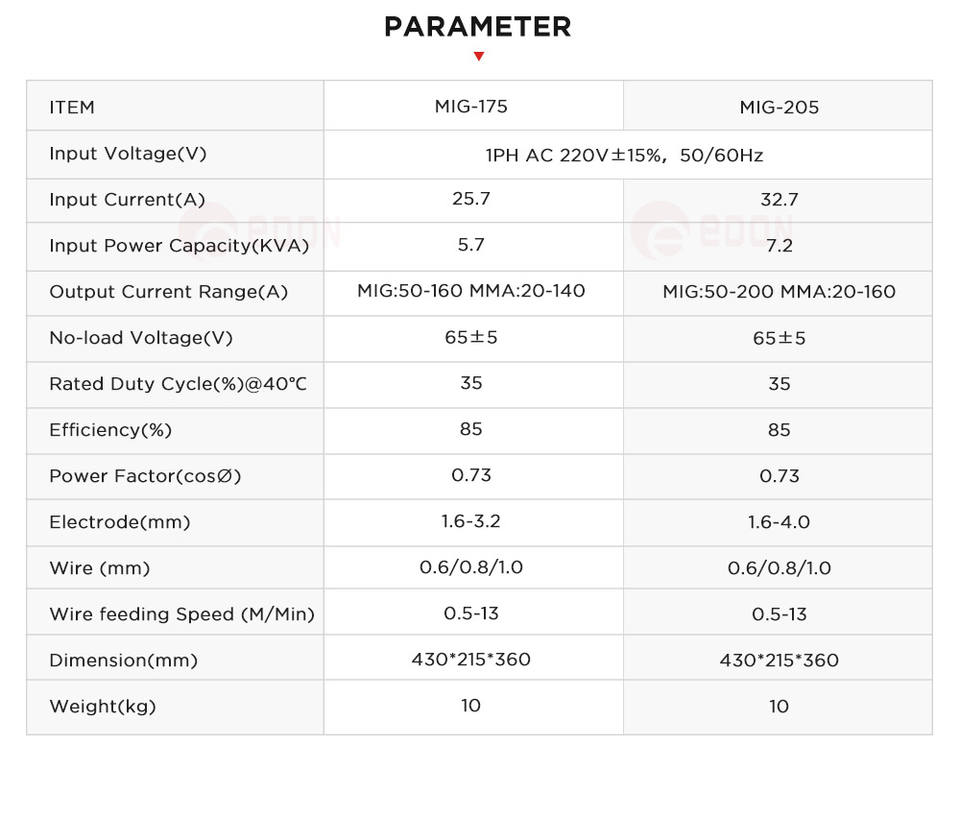EDON Expert MIG 205 IGBT onduleur MIG MACHINE à souder CO2 gaz MIG soudeur