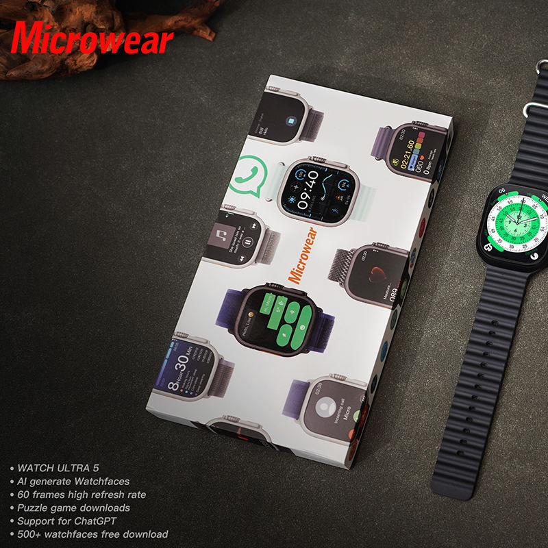 Montre connectée EDS Microwear U5 Watch Ultra 5 avec écran TFT de 2,01 pouces, batterie de 340 mAh, Chat GPT, réponse WhatsApp pour iOS et Android
