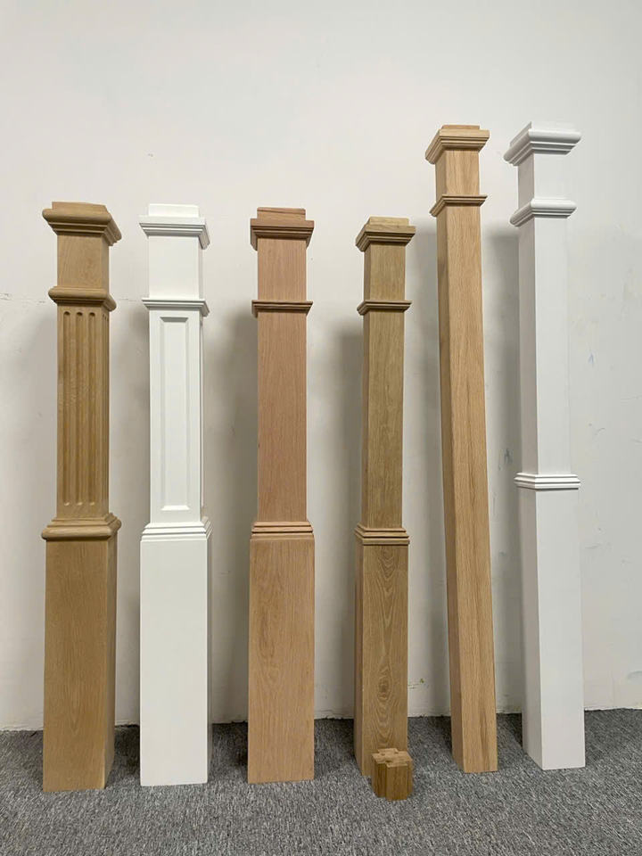 Poteau de balustrade en bois massif de haute qualité EFS, chêne blanc, chêne rouge, colonne de rampe d'escalier moderne, pièces d'escalier intérieures, modèle 4091P