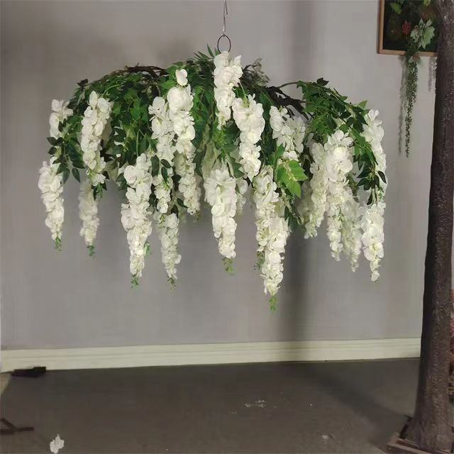 EG-WD72 Décoration de salle, fleurs artificielles en soie blanche, glycine, décoration de mariage, fleurs suspendues au plafond pour salle de réception de mariage