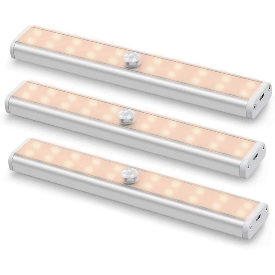 Lampe de nuit sans fil EGH 20 LED blanc chaud rechargeable par USB avec détecteur de mouvement PIR, en aluminium moderne, pour armoire, salon, DIY