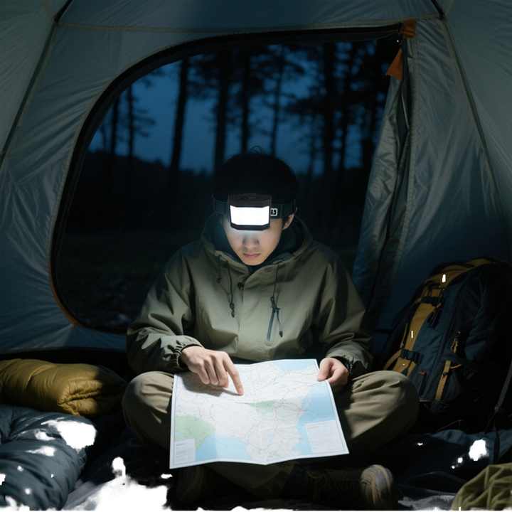 Lampe frontale étanche rechargeable EGH, batterie 400 mAh et construction en ABS, lampe frontale multi-modes pour le travail en extérieur et la randonnée